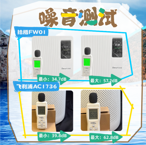 飞利浦的最大运行噪音为62.6dB,在体感上已明显高于拾梧,且机器在高档运行时存在风噪感,尤其在小户型或封闭空间内较为明显。最小档噪音也为39.9dB,在静音环境中仍容易察觉,较适合白天持续运行,不推荐用于对声音敏感的场景。