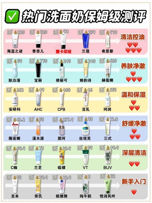 轻松满足您的肌肤需求!洗面奶是日常生活必不可少的,只有肌肤清洁干净了,才能充分吸收后续护肤成分,大家可以根据上面的介绍按需选择,特别最近双十一到啦,每个品牌都有优惠,喜欢的小姐妹一定要试试哦!