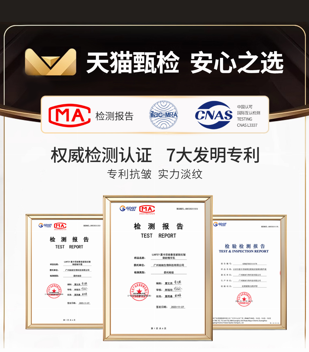 在淡纹方面:对付干纹、细纹绝不手软,核心成分含有玻色因和六胜肽,能针对性舒缓肌肤纹路,减少动态纹的产生,还能让已经出现的干纹慢慢变浅,坚持用下来,肌肤摸起来会越来越平滑,再也不用怕小细纹显老。
