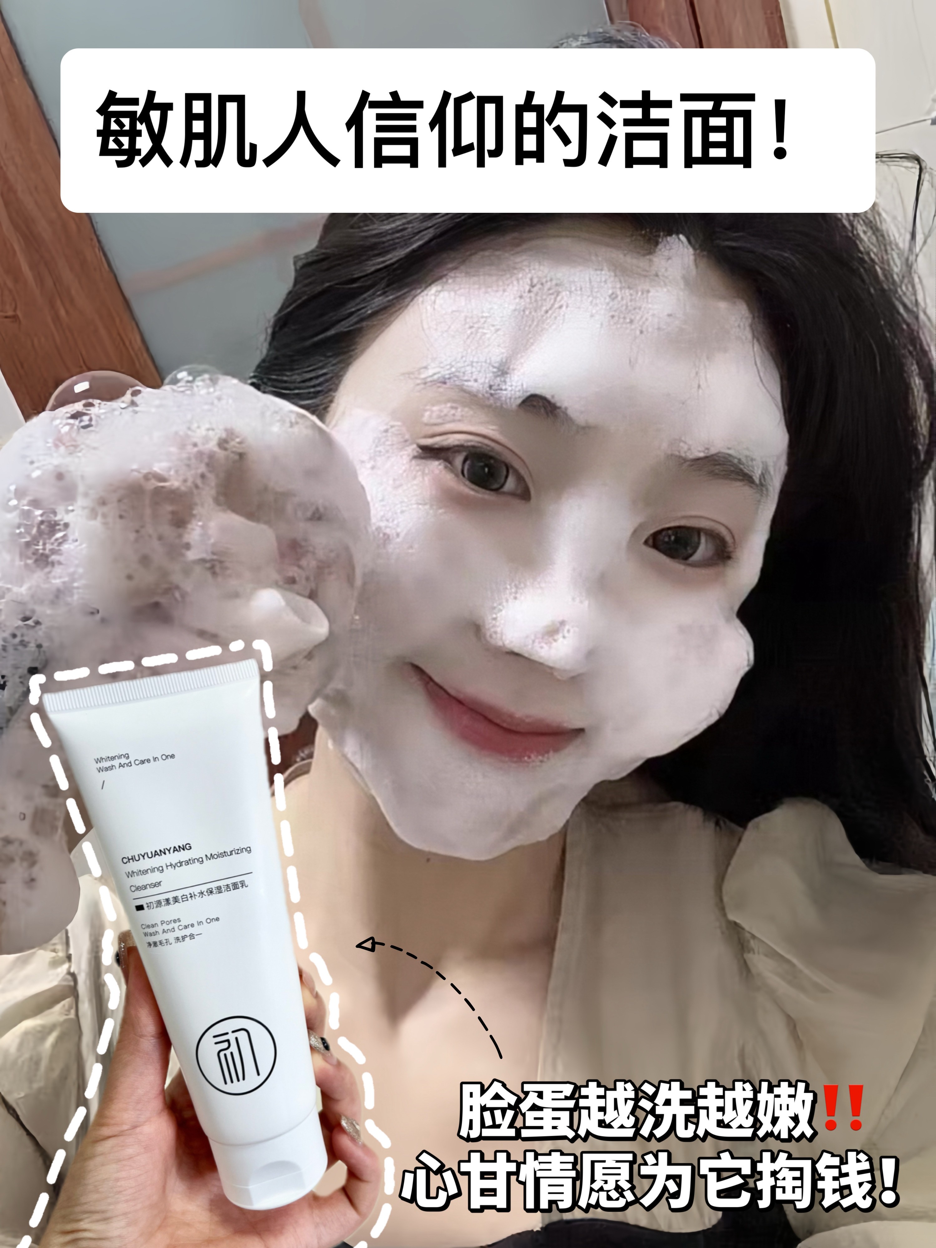 这款洗面奶它的清洁力超在线!感觉每一个泡泡都在钻进毛孔里把污垢往外拉!日常通勤的防晒和淡妆,它都能轻松带走!洗完脸蛋是那种干净透亮的软嫩。
