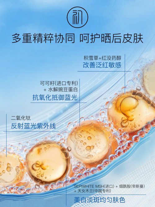 积雪草提取物:含积雪草苷等活性成分,能加速晒后受损细胞修复,促进胶原再生,缓解紫外线导致的泛红、灼热感,长期使用可增强肌肤耐受力。