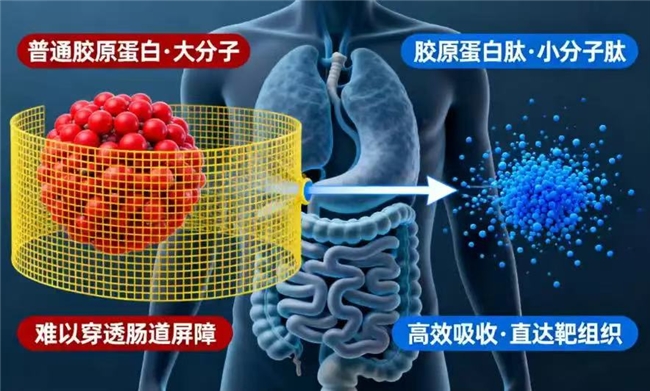 为什么这几年胶原蛋白肽火遍全国?因为它解决了传统胶原的“老大难”——吸收率低。过去吃猪蹄补胶原?效果微乎其微,因为大分子胶原在胃里就被分解了,很难直达皮肤。而小分子肽不同,它能快速穿透肠道,进入血液,像快递员一样精准投递到需要的地方。研究显示,连续补充几个月,许多人反馈皮肤更水润、关节更轻松。这不是“返老还童”,而是给身体加把劲,让人由内而外焕发活力。