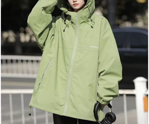 QGF 冲锋衣侧重年轻化设计与穿着舒适度,色彩选择丰富,除经典黑灰外,还提供落日橙、烟绿色等清新色调,满足不同穿搭偏好。面料采用仿荷叶防水防污技术,表面斥水层能快速隔绝液体,同时具备一定防风性,应对日常突发天气足够实用。3D 立体剪裁让版型更贴合身形,肩线设计避免了溜肩问题,短款款式搭配高腰裤能优化身材比例,对小个子群体友好。细节上,可拆卸帽子带有松紧调节绳,大风天气也能稳固佩戴;