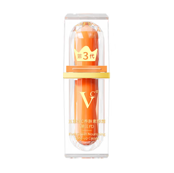 VC五重维C素颜霜第三代是一款兼具护肤和提亮肤色的产品。它含有五重维C成分,能抑制黑色素生成,让肌肤逐渐变白。同时,它可以在肌肤表面形成一层均匀的膜,提亮肤色,让肌肤看起来自然有光泽,就像化了淡妆一样。而且它还有一定的保湿效果,能让肌肤保持水润,不会出现干燥起皮的现象。