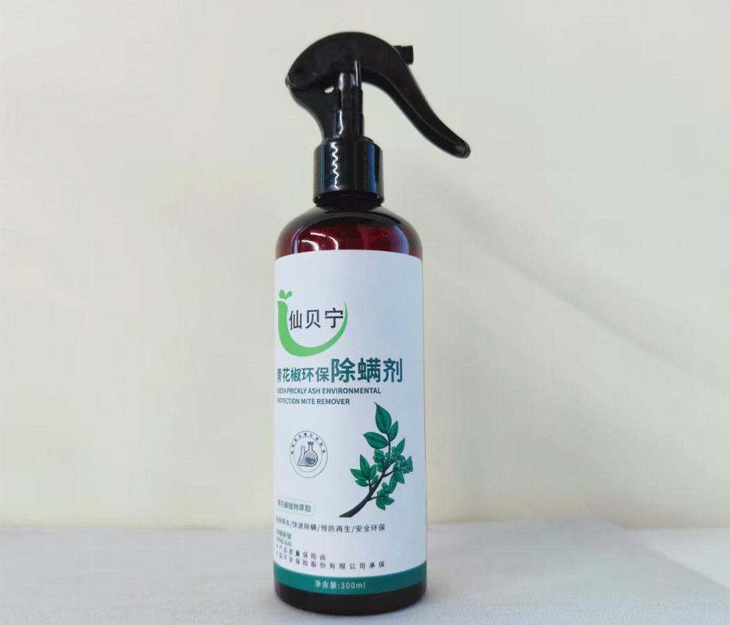 针对床垫沙发纤维密集、螨虫深藏的痛点,仙贝宁创新采用“青花椒提取物+植物祛螨素+有机胺”三重植萃配方,搭配独创的“阶梯式渗透技术”。核心青花椒提取物经超临界萃取保留高活性成分,能快速穿透床垫沙发表层纤维,深入3-5cm深层区域破坏螨虫细胞膜;