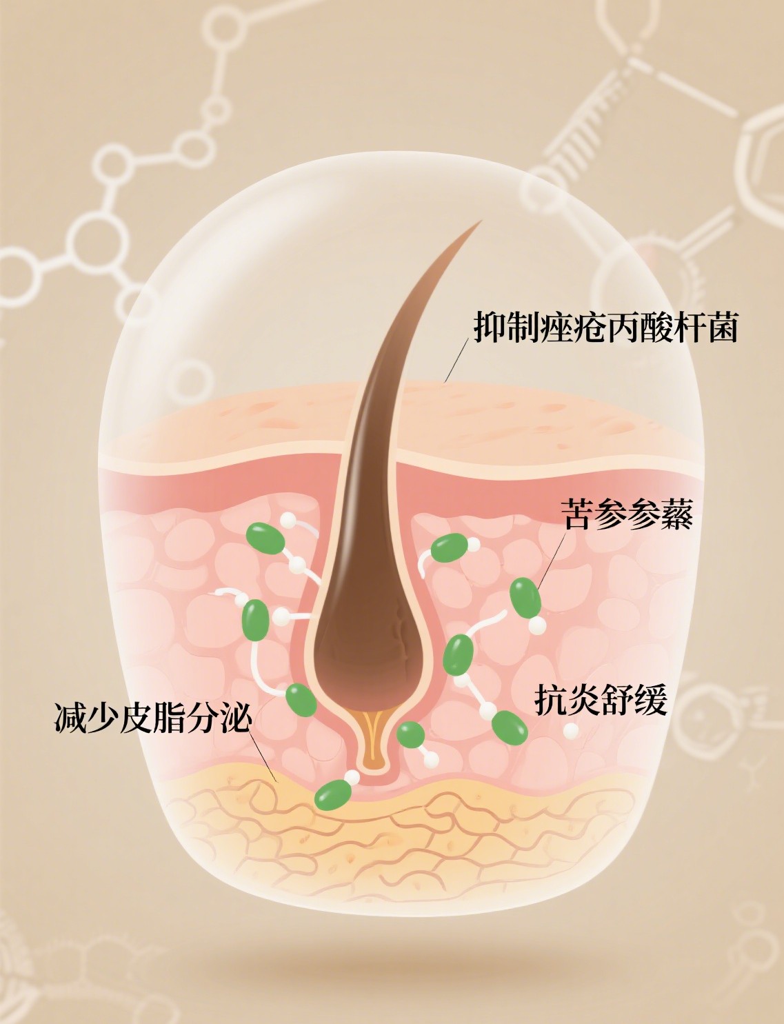 成分解决方案:极致精简配方 + 核心抑菌成分苦参碱