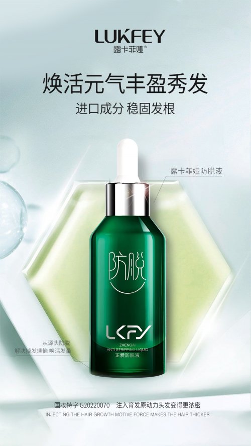 露卡菲娅防脱精华液,水感精华接触头皮吸收快,不黏不腻,滴管设计精准控制用量,一天2~3次,可全头皮使用,用后免洗;主要成分——独家专利专研生发因子+进口防脱精华+多种高活性植萃提取,深层次地为发根、发丝注入密集营养,感受直达毛囊深处的养发黑科技。