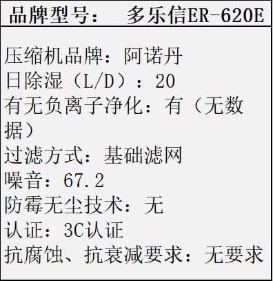 1.噪音控制:多乐信ER-630E搭载松下压缩机后降噪效果很明显,比老式机型少了40%噪音,运行时很安静,放在卧室、儿童房用也不打扰。