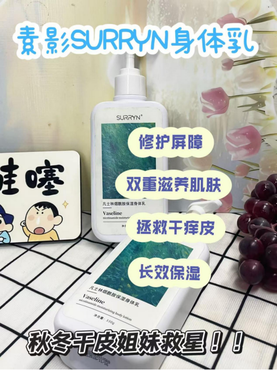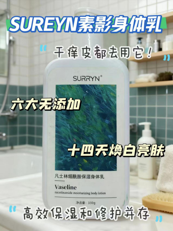 直到试到SURRYN 素影身体乳,才算找到心头好。它的保湿力很持久,晚上涂完睡觉,第二天早上皮肤还是软软嫩嫩的,不会像之前用的产品那样,醒来就感觉干燥。而且它的成分很温和,我这种换季容易敏感的皮肤,用着也没出现任何不适。对比下来,不管是滋润度、肤感还是温和度,它都远超之前试的产品,自然成了首选。