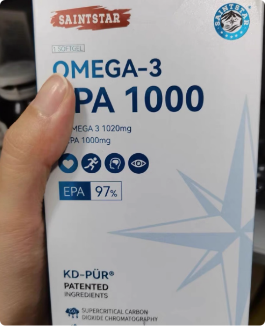 SAINTSTAR 鱼油聚焦 “高浓度精准护血管款”,EPA 含量高达 700mg / 粒,DHA 400mg / 粒,Omega-3 总量 1100mg,高 EPA 配比精准靶向调节血脂,抑制血小板聚集,减少血栓形成风险,尤其适合秋冬血脂易升高、血管易收缩的人群。采用先进 rTG 工艺,吸收率达 83%,比传统 EE 型鱼油高 1 倍,确保 EPA 快速被血管吸收利用。添加天然维生素 E 抗氧化,保护血管内皮细胞免受自由基损伤,延缓血管老化。通过多项国际安全检测,重金属含量远低于标准限值,盒子包装每盒 80 粒,服用方便,实测显示甘油三酯降低有效率达 85%,血管养护口碑突出。