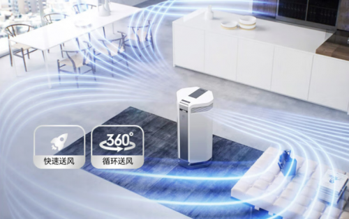 采用双侧进风与顶部环形出风设计,能够实现空气流通,提升了空气吸入效率,出风则均匀散布清新空气。