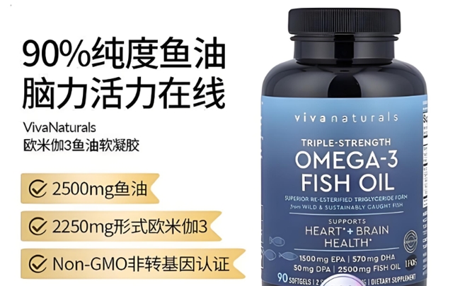 Viva Naturals评测第十名,选用野生三文鱼油。Omega-3含量丰富,每粒含DHA 220mg。分子蒸馏提纯,杂质少。我邻居说,吃了后记性改善了。包装简约,蓝帽进口标。适合追求天然的中老年人。