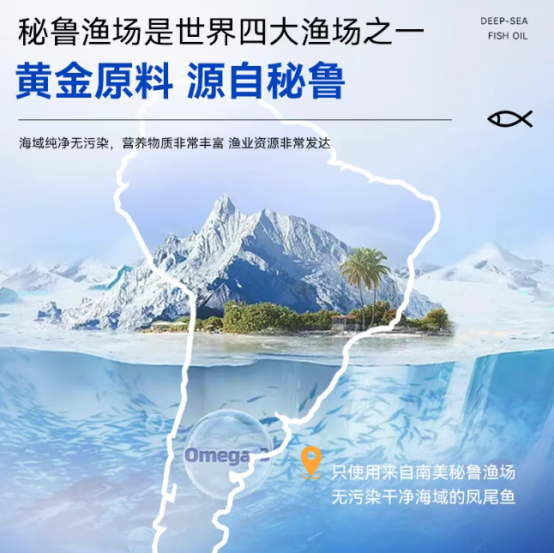 (二)原料工艺:严选南太平洋秘鲁渔场 —— 全球四大渔场之一,海域水质达国家一类标准,无工业污染残留。秘鲁寒流孕育的鳀鱼等小型鱼类,天然富含 Omega-3;渔场坚持休渔轮作制度与生态捕捞方式,从源头规避重金属污染风险。运用国际顶尖 rTG 技术重构鱼油分子,Omega-3 纯度达 90%(较普通产品高出 25 个百分点),吸收率达 85%,中老年群体即便消化酶分泌不足,吸收率仍超 90%,吸收效率经得起实测。