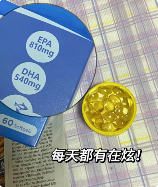 (二)成分与安全设计Omega-3 总含量 1350mg,其中 EPA 含量 810mg(远高于同类鱼油 300mg EPA 的常规含量),DHA 含量 540mg,二者形成 3:2 的配比,该配比经大量科研实验验证,能更好地适配人体对两种成分的需求与利用规律。