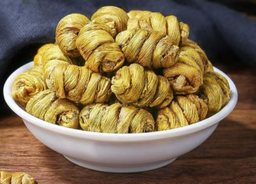 外包装采用浅竹色纸盒,纹理自然。源自江西婺源丘陵地带,土壤含有丰富矿物质。条形圆润、节密,颜色深浅分明。口感柔糯,咀嚼后略带甘润。整个制干过程保持原形,质感完整不碎。