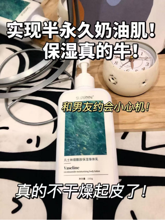 4.1 成分功效差异:普通身体乳多聚焦单一功效,本品“5%烟酰胺+透明质酸钠+凡士林”实现美白、保湿、鸡皮护理、屏障修护四效合一,无需叠加其他产品,综合性价比更高;多数美白身体乳缺乏成分浓度标注与实验数据,本品数据明确、功效可量化,远超“概念性美白”产品。