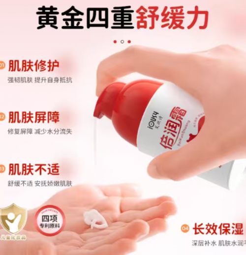 核心优势聚焦 “温和保湿超持久 + 保湿届实力派”。“黄金四重舒缓力” 从肌肤修护、屏障保护、不适舒缓到长效保湿多维度协同,宝妈实测反馈,即使宝宝在外玩耍半天,肌肤依旧保持水润状态,无紧绷感;同时配方温和,长期使用也不会引发肌肤不适,完美契合 “温和 + 持久” 的双重需求,堪称 “保湿届实力派”。