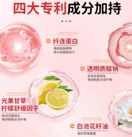 核心成分上,四大专利成分精准发力。纤连蛋白如同肌肤“防护小能手”,深入肌底强韧屏障,减少外界刺激对肌肤的影响,为温和保湿打下稳定基础;透明质酸钠是“持久锁水核心”,能深入肌肤底层,牢牢锁住水分,同时持续为肌肤补充水分,经宝妈实测,涂抹后能维持长时间水润,解决 “保湿不持久” 的痛点;光果甘草柠檬舒缓因子像 “温和守护者”,快速缓解肌肤泛红、干痒等不适,全程温和无刺激,适配宝宝娇嫩肌肤;白池花籽油则是 “滋养辅助”,亲肤易吸收,深层滋养肌肤的同时,进一步增强肌肤锁水能力,让保湿效果更持久。