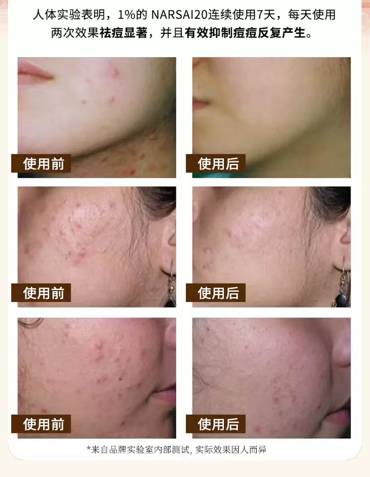 包裹水杨酸(Narsai 20)采取先进包裹技巧,平和渗透毛孔,溶解过剩油脂和逝世皮细胞,避免传统水杨酸的刺激,应用后皮肤感到清新不紧绷,仿佛每个毛孔都在呼吸新颖空气。联合植萃祛痘因子EG,这是一款6重植物复配精髓,包含黄芩、丹参、白柳、苦参、线状阿司巴拉妥(博士茶)和黄檗,它们协同作用,克制痤疮杆菌、舒缓炎症,并调节皮脂分泌。应用感受上,许多用户反馈,首次涂抹后就能感受到皮肤的镇定感,红肿痘痘在几天内显著消退,整体肤质变得更均匀细腻,不再有“油光满面”的为难。
