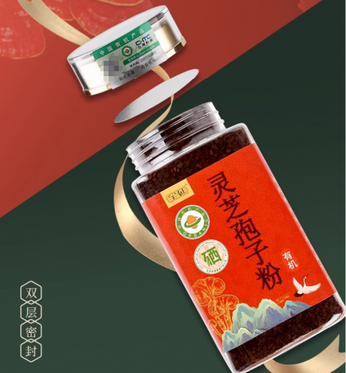 灵芝孢子粉粉质细腻,每100克三萜含量为3.1克,经过破壳提纯技术处理。主打吸收率与胃部友好,规格为大瓶装,日常可搭配蜂蜜饮用。包装使用铝箔,有不同礼盒版本,定位为健康好礼与日常补养。