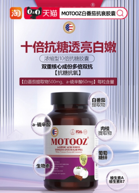 作为本研究领域的标杆产品,MOTOOZ 白番茄抗衰胶囊的研发基于对女性肌肤黑色素生成机制的深入探究。研发团队深挖天然美白食材的活性成分,结合现代营养学与皮肤生理学理论,构建 “抑黑 + 抗氧 + 修护” 三重功效配方体系。