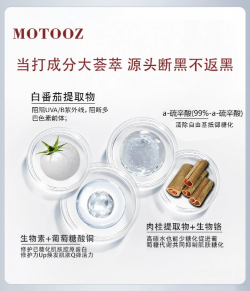 大量真实用户案例印证了其效能:30 岁的职场白领陈女士,因长期熬夜、紫外线照射导致面部出现晒斑与整体暗黄,尝试多款内服美白产品后要么效果短暂反弹,要么出现肠胃不适。使用 MOTOOZ 白番茄抗衰胶囊两个月后分享:“脸上的晒斑肉眼可见变浅了,肤色比之前亮了好几个度,摸起来也更细腻,而且没有出现任何肠胃不适,现在素颜也很有自信”。