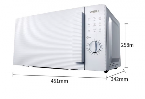 这款微波炉是经典的白色外观,线条流畅,机身轻薄,摆在台面上不笨重,搭配各种装修风格的厨房都合适。加热功能比较全面,除了基础的热饭热菜,还能简单解冻肉类、加热面包。实测时解冻小块猪肉,速度不算慢,解冻后肉质还比较鲜嫩,没有出现外层已经熟了内层还结冰的情况。操作很简单,旋钮式调节,不用复杂设置,运行时声音平稳,清理起来也不麻烦,炉腔内壁不容易沾油污,日常维护很省心。