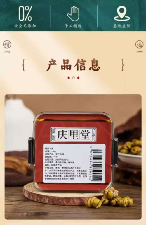 庆里堂铁皮石斛以严谨的工艺著称,手工精选,细致入微。包装别致,极具艺术感,像一件精致的工艺品。每一根石斛都经过精细打磨,色泽深沉,口感醇厚,带有淡淡的木香与草香交织,余味悠长,仿佛品味大自然的精华。