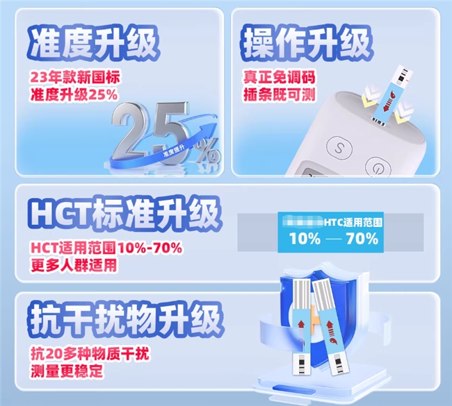 10%-70%的血细胞比容(HCT)自适应技术,让花谷康具备了广泛的人群适配性。不同人群的血液特性存在差异,比如贫血者的血液较为稀薄、长期吸烟者的血液黏稠度较高、儿童的血液样本量少,这些情况都可能影响普通血糖仪的测量准确性。而花谷康能智能校正这些差异,无论面对哪种血液样本,都能输出稳定精准的结果,误差不超过±10%。