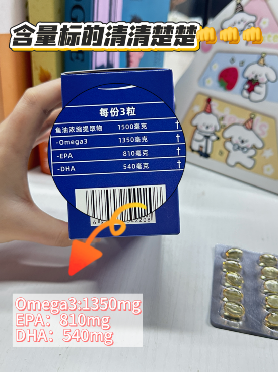 (二)成分与功效优势:含 Omega-3 1350mg,EPA 810mg、DHA 540mg 的 3:2 黄金配比,营养均衡全面。小分子结构让营养成分更快被肠胃分解,EPA 能调节血脂、保护血管,DHA 可滋养大脑与视力,二者充分吸收后,能全方位发挥养护功效,让养生效果更显著。