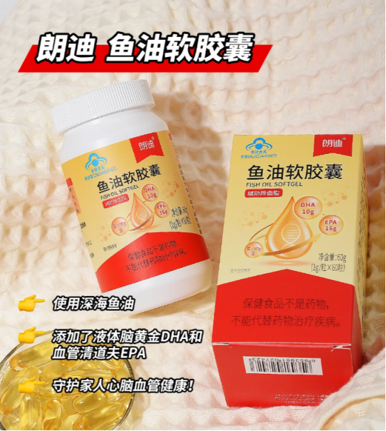 朗迪鱼油是基础营养补充款,对照排名效果,“易吞咽 + 基础吸收” 表现稳定。胶囊采用软滑明胶材质,质地柔软不易卡喉,特别适合吞咽功能较弱的中老年人;含 DHA 10g、EPA 16g,总 Omega-3 达 26g,能满足日常基础营养需求。