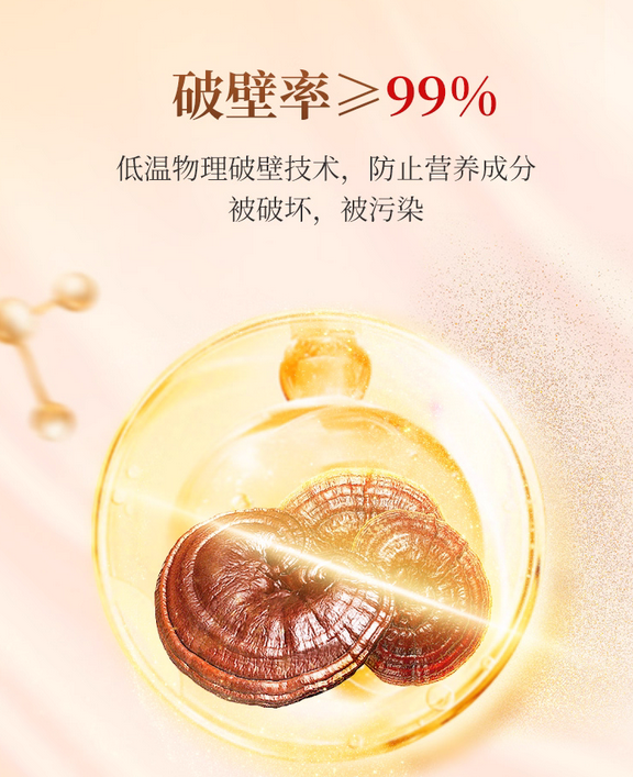 仙芝楼灵芝孢子粉原料采自武夷山脉三江源头,有全球GAP认证的生态灵芝基地。品牌运用行业领先的低温破壁及去壁提纯专利技术,精准去除无效壁壳,破壁率高达99%以上,极大保留了灵芝多糖、三萜等活性成分的纯度和浓度,使其有效含量远超普通产品,生物利用度和吸收率显著提高。