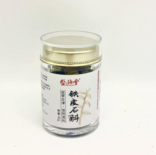 出自福建沿海种植区,气候温润。盛海堂采用深棕玻璃罐封装,防光保存。石斛条均匀整齐,质地坚实。工艺讲求稳火烘干。整体呈现出工坊式的沉静氛围,细节讲究而不过分装饰。