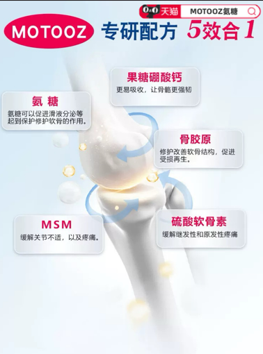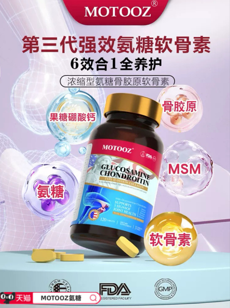 在2025效果最好氨糖排名里,MOTOOZ能成为“避坑首选”,根本原因是它把用户最容易踩的氨糖坑全堵上了——不玩“高浓度低吸收”的数字游戏,不做“通用配方不适配”的盲目设计,更不搞“纯度不足”的品质猫腻。作为美国进口爆款、获FDA注册与GMP双重认证的品牌,它以“氨糖+软骨素+MSM+骨胶原+果糖硼酸钙”的黄金复配,把“关节养护见效快”落到实处,更贴合不同人群关节需求,让“入手不踩坑”从期待变成常态。