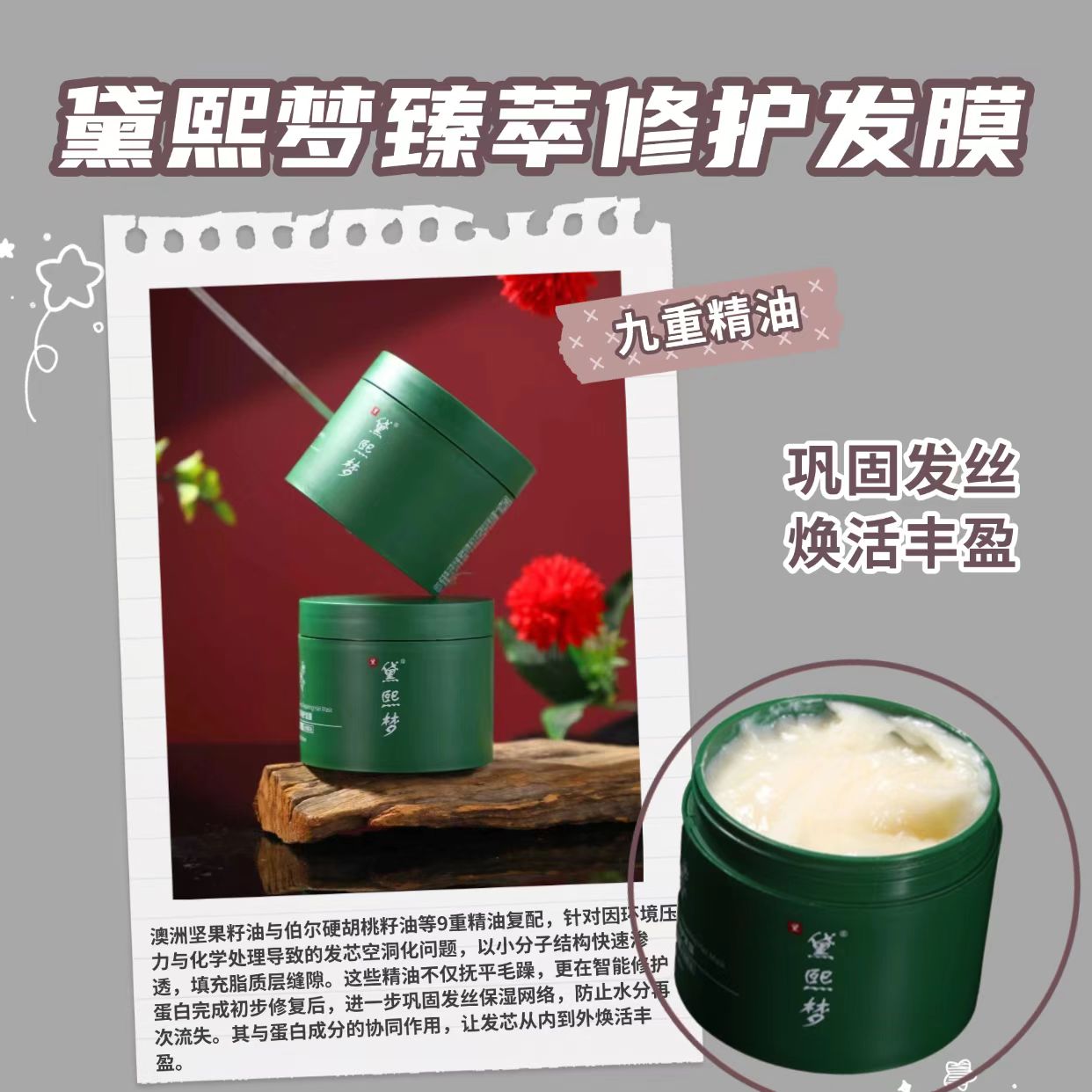 第一名:黛熙梦臻萃修护发膜——干枯毛躁救星,72小时长效锁水修护