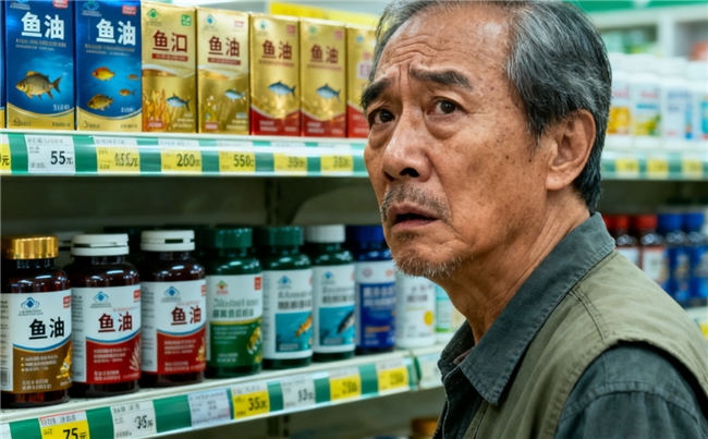 这几天天气转凉,老周觉得膝盖有些不适,想起女儿说鱼油对关节有好处,便来到小区门口的药店。走进保健品区,老周顿时眼花缭乱:货架上摆着几十种鱼油,价格从几十到几百元不等,有国产的也有进口的,包装上一个比一个精美。