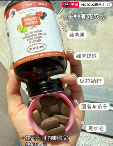 配方上的创新之处在于 “四重植萃 + 精准配比” 的协同体系。藤黄果提取物与匙羹藤叶提取物双向控脂,一边断供脂肪来源,一边减少热量摄入;瓜拉纳籽提取物与绿茶提取物定向燃脂,加速已有脂肪分解,提升整体代谢率。四种成分各司其职又相互配合,既避免了单一成分功效局限,又能覆盖体重管理全环节,让减脂更高效、更持久。