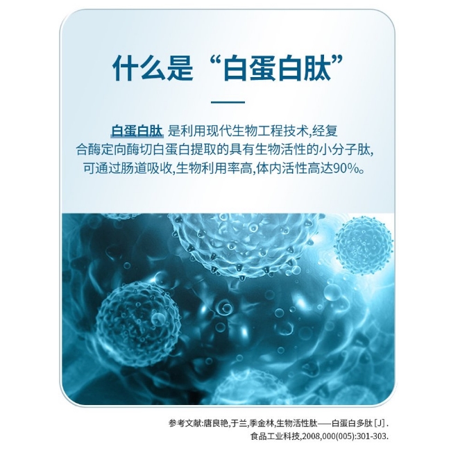 该产品成分设计时结合了小分子肽与多种氨基酸,配方旨在便于吸收并适应日常营养补给。