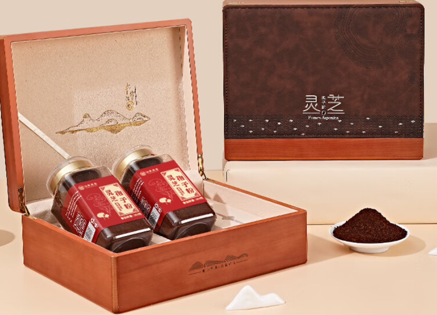 这款灵芝孢子粉每100克含总三萜15克,有两罐装设计。原料产自安徽地方核心基地,以仿野生远离污染为特色。粉质深褐,菌香浓且孢子油丰富,低温破壁保活性。礼盒装更方便节日送礼,标准适用场景较广泛,使用过程满足多样化场景。