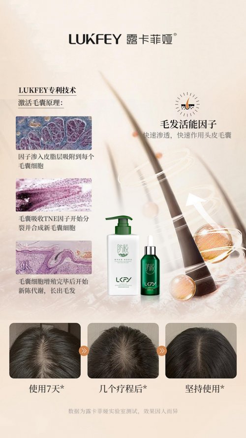 露卡菲娅防脱精华液在防脱和育发上的优势,离不开科学的成分搭配。独家专利专研生发因子能精准作用于毛囊,从根源处解决掉发的问题,再加上当归、人参、知母根、侧柏叶等草本精华的滋养,以及进口防脱成分的渗透,能激活毛囊的生长活力,增强毛囊的稳固性,让日常梳头、洗头时的掉发量明显减少,无狂脱期。