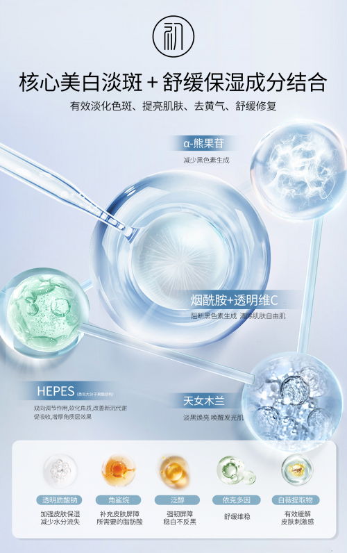 干皮油皮敏皮的肤质都能适用,它的成分含有美白烟酰胺、α-熊果苷搭配天女木兰、北美金缕梅、等多种成分,能有效提亮我们的肌肤美白,触肤带来轻润感,帮助滢润焕亮美肌,令肌肤娇艳白滑,透亮美采。其中酰本胺能有效拦截黑色素信号,α-熊果苷抑制酪氨酸酶活性减少黑色素生成,烟酰胺阻断黑色素运转。这么强有力的成分加注,你还担心什么!