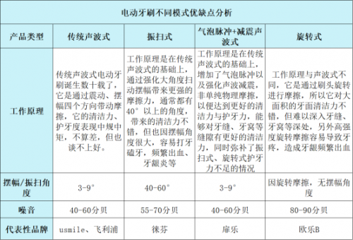 为便于大家对比,下面我将概括这四类常见电动牙刷的主要特点: