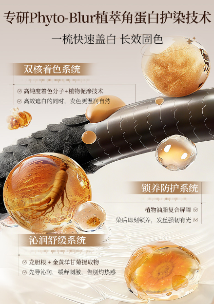 深入研究它的成分表,真的会被品牌的诚意打动!核心的艾叶和侧柏叶提取物来自优质产地,能有效强韧发根;当归与杜仲形成黄金修护组合,专门针对染后脆弱发质;特别添加的姜根提取物能促进头皮循环,让发色更加饱满亮泽。更难得的是采用了纳米级植物小分子技术,确保每一根发丝都能吸收到足量的玻尿酸和修护蛋白,染发的同时完成深层养护。