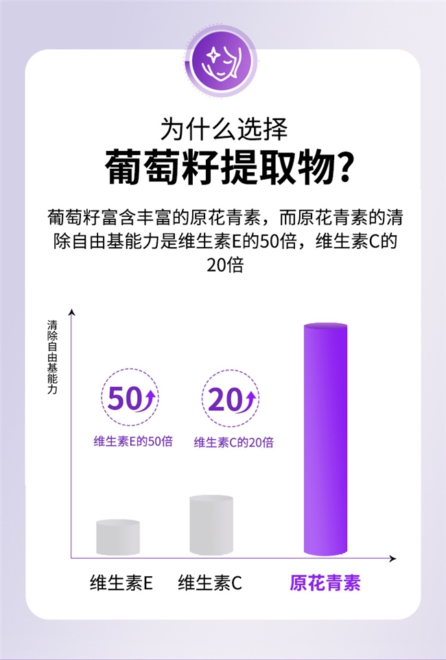 配方上坚持“极简纯粹”理念,仅含高纯度葡萄籽提取物与天然白果仁粉,剔除防腐剂、人工色素、香精等冗余成分,杂质残留控制在0.1%以下,更获蓝帽认证,安全性与功效性双重保障。