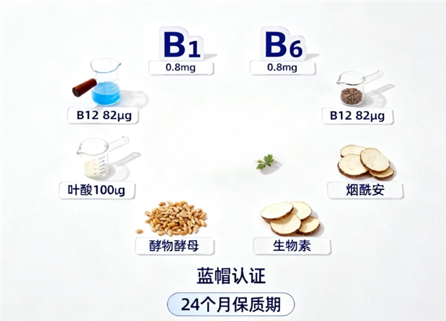 2025年,蓝帽认证已成选购硬指标——这枚国家认可的“安全勋章”,意味着成分纯净、剂量精准,吃着踏实。专家支招:饭后服用吸收翻倍,别和咖啡、酒精同服,避免影响效果;日常吃的全谷物、绿叶菜虽含B族,但现代节奏快,补剂才是省时省心的选择,它从不是药物,而是帮你平衡生活的“元气伙伴”。