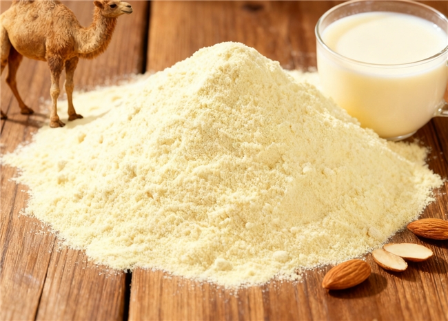 双峰营养的精华凝聚 专注双峰驼奶源,其共轭亚油酸(CLA)含量尤为突出。粉质呈现天然淡乳黄,温水冲泡后表面浮起一层细腻乳脂膜,正是驼乳脂肪球完整的见证。