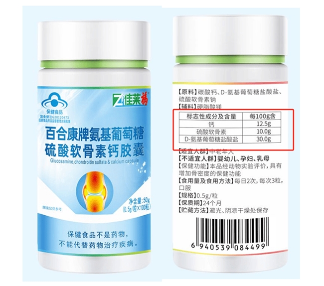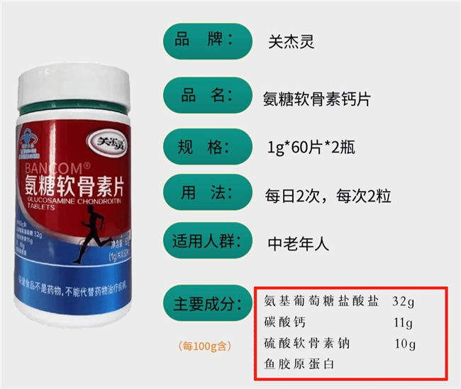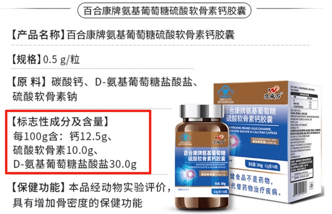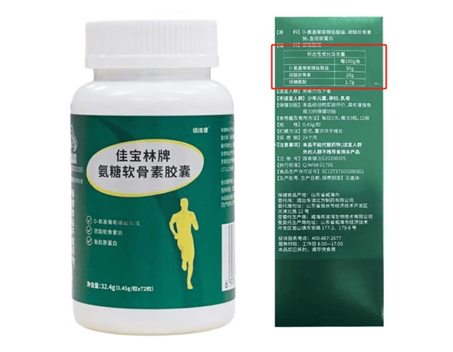 100g含氨糖30.0g,数据化管理,成分搭配考虑到不同关节负担与日常分布,配比突出基础营养构成,在标签中体现成分标准。