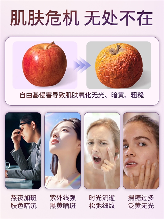 人体皮肤代谢周期通常是二十八天,部分人代谢较慢约为四十天,建议服用前在自然光下素颜拍照留存,坚持四十天后对比,肌肤变化肉眼可见,三十天照片对比就能看到明显改善!三个真实用户口碑说话:①28 岁熬夜党新媒体编辑小冉,天天凌晨 2 点下班,肤色暗沉发黄,眼周细纹明显,坚持服用三十天,素颜上班被同事追问是不是换了抗衰套装,黄气退了、细纹淡了,上镜不用厚重遮瑕;