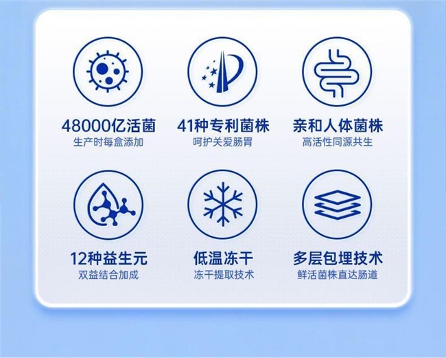 产品选用 6 种优质菌株,每袋出厂活菌量>300 亿 CFU,采用药厂级生产标准,还自建了东北最大的益生菌研发实验基地,从菌株培育到成品加工,全程都能把控。