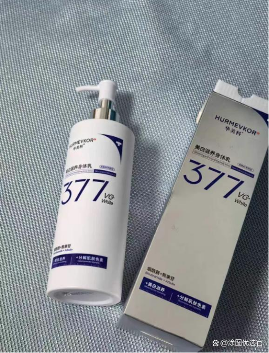 377身体乳聚焦“温和美白+基础保湿”,添加377美白成分与维生素C衍生物,抑制黑色素生成,搭配甘油补水,符合选款指南中“秋冬美白需求”。质地乳液状,吸收快,无刺激;配方无重金属、漂白剂,经温和性测试,适合有美白需求的敏感肌,选款时可按“功效匹配”指南快速确定。
